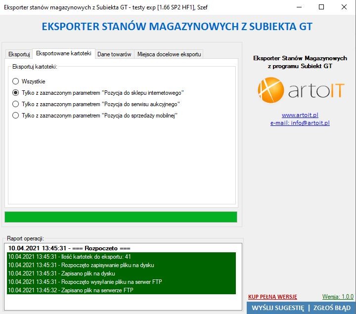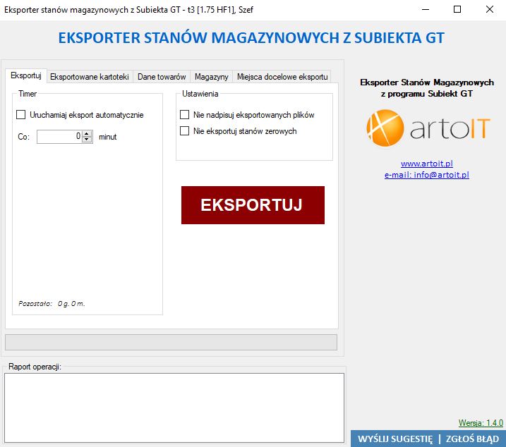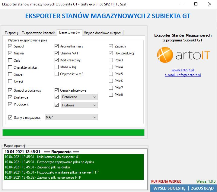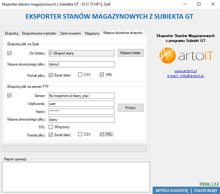 Subiekt GT - Eksporter stanów magazynowych na FTP lub dysk