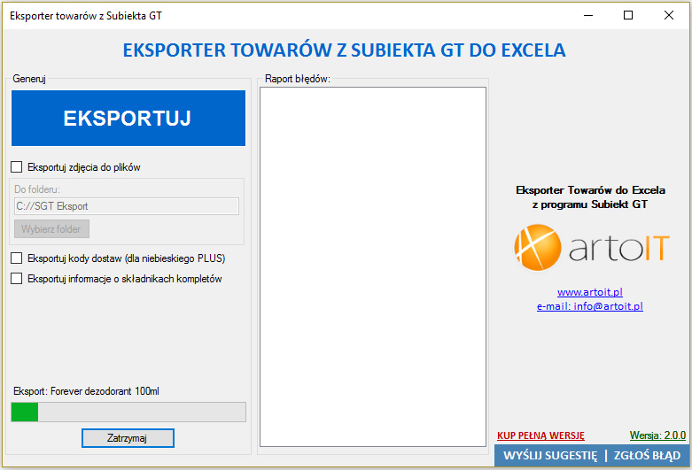 Od wersji 2.0.0 możliwy jest również eksport składników kompletów, dzięki czemu można już wyeksportować kompleksowo dane o towarach w Subiekcie GT!