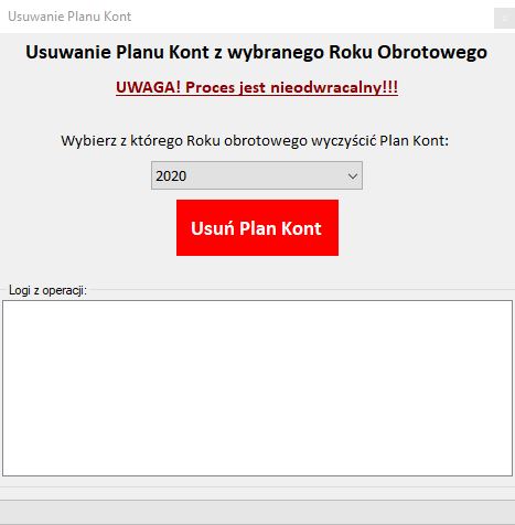 - Usuwanie planu kont z wybranego roku obrotowego