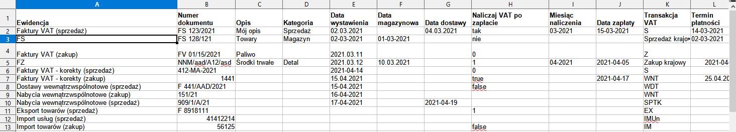 - Przeniesienie danych do ewidencji VAT z zewnętrznych systemów.