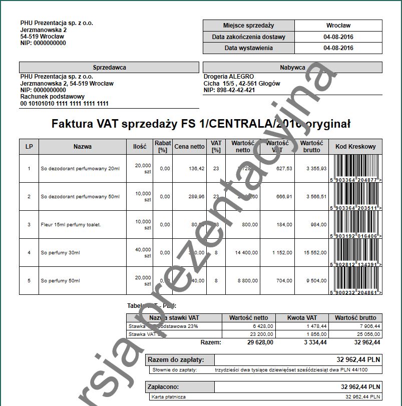 - Wydruk pól własnych zaawansowanych na dokumentach